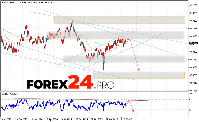 AUD/USD Weekly Forecast August 18 — 22, 2025 suggests an attempt at a bullish correction and a test of the 0.6545 level. Further, the currency pair will continue to fall below the 0.5975 level. The test of the trend line on the relative strength indicator will support the decline of the pair in the current trading week. A strong growth and a breakout of the 0.6745 area will cancel the decline scenario. This will indicate a breakout of the resistance area and a continuation of the pair’s rise with a target above 0.7135.