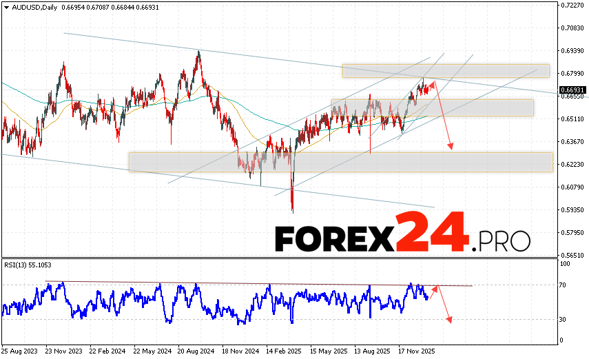 AUD/USD Weekly Forecast January 19 – 23, 2026 suggests an attempt to develop a bullish correction and test the 0.6735 level. Subsequently, the currency pair is expected to continue falling below 0.6345. A test of the trendline on the relative strength indicator (RSI) will support a decline this week. A strong rally and a breakout of the 0.6845 area will cancel out the downside scenario. This will indicate a breakout of the resistance area and a continued rise in the pair with a target above 0.7135.