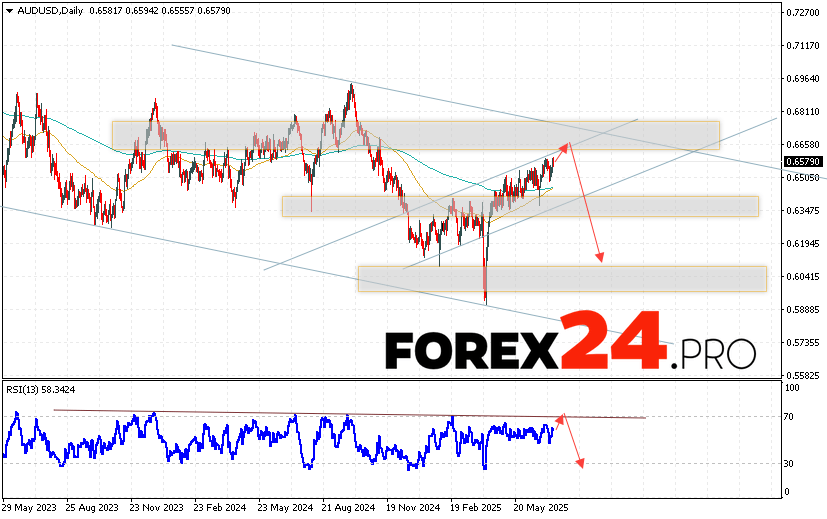 AUD/USD Weekly Forecast July 14 — 18, 2025 suggests an attempt at a bullish correction and a test of the 0.6645 level. Further, the currency pair will continue to fall below the 0.6065 level. The test of the trend line on the relative strength indicator will support the decline of the pair in the current trading week. A strong growth and a breakout of the 0.6845 area will cancel the decline scenario. This will indicate a breakout of the resistance area and a continuation of the pair’s rise with a target above 0.7285.