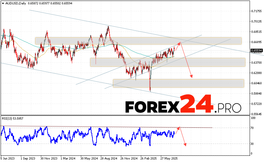 AUD/USD Weekly Forecast July 28 — August 1, 2025 suggests an attempt at a bullish correction and a test of the 0.6615 level. Further, the currency pair will continue to fall below the 0.6065 level. The test of the trend line on the relative strength indicator will support the decline of the pair in the current trading week. A strong growth and a breakout of the 0.6765 area will cancel the decline scenario. This will indicate a breakout of the resistance area and a continuation of the pair’s rise with a target above 0.7225.