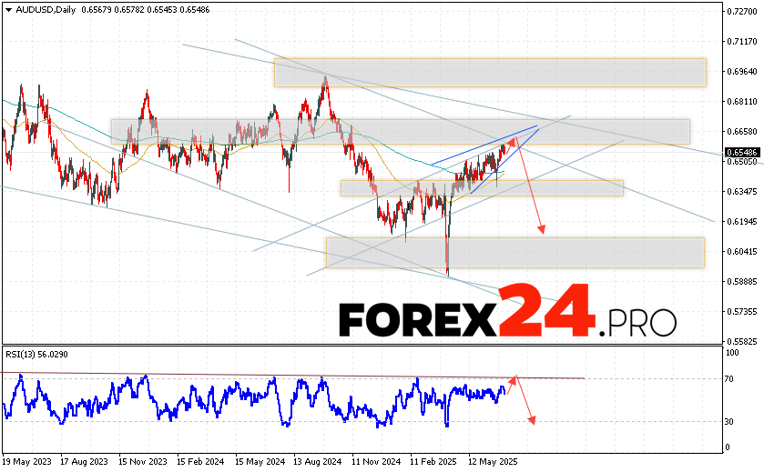 AUD/USD Weekly Forecast July 7 — 11, 2025 suggests an attempt to develop a bullish correction and test the level of 0.6605. Further, the currency pair will continue to fall below the level of 0.6085. In favor of the pair decline in the current trading week will be a test of the trend line on the relative strength indicator. A strong growth and breakdown of the 0.6755 area will cancel the downside option. This will indicate the breakdown of the resistance area and the continuation of the pair’s rise with the target above 0.7175.