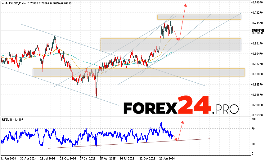 AUD/USD Weekly Forecast March 23 – 27, 2026 suggests an attempt to develop a bearish correction and test the 0.6835 level. Further growth is expected above 0.7485. A test of the trendline on the relative strength indicator (RSI) will support the pair’s upside this trading week. A decline and a breakout of the 0.6705 area will cancel out the upward trend. This will indicate a breakout of the support area and continued decline with a target below 0.6465.