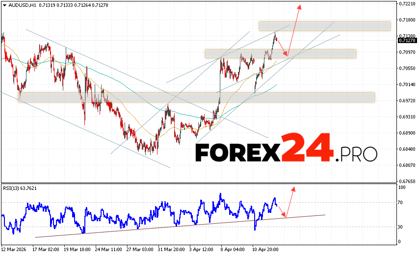 Australian Dollar Forecast AUD/USD for April 16, 2026 suggests an attempt to test the support level near 0.7090. Further growth above 0.7235 would be expected. An additional signal in favor of an uptrend would be a reversal from the trend line on the relative strength indicator. A reversal of the upward trend would be a fall in AUD/USD quotes and a breakout of 0.7025. This will indicate a continued decline in quotes with a potential target below 0.6835.
