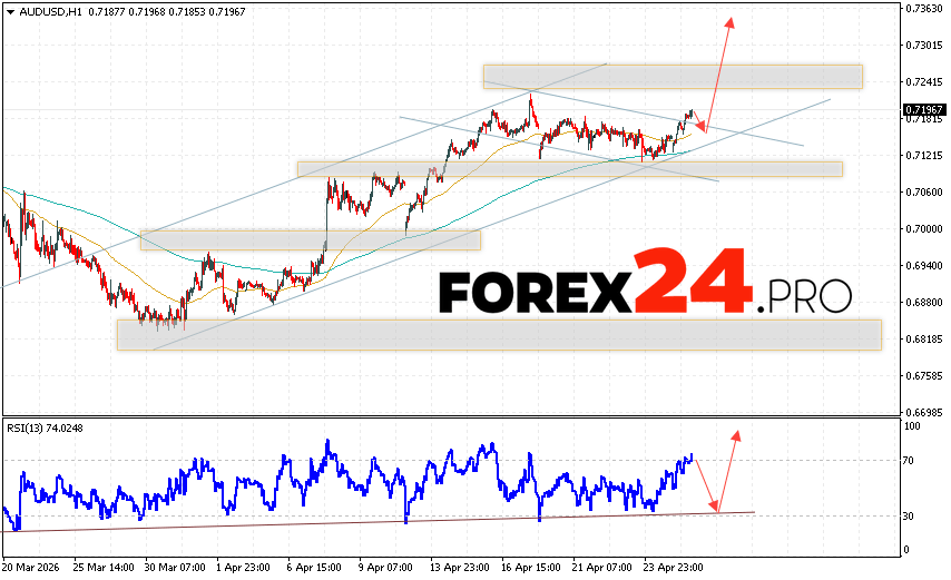 Australian Dollar Forecast AUD/USD for April 28, 2026 suggests an attempt to test the support level near 0.7155. Further growth above 0.7365. An additional signal in favor of an uptrend would be a rebound from the trend line on the relative strength indicator. A reversal of the upward scenario would be a fall in AUD/USD quotes and a breakout of 0.7045. This would indicate a continued decline in quotes, with a potential target below 0.6865.