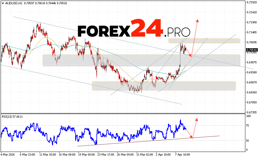 Australian Dollar Forecast AUD/USD for April 9, 2026 suggests an attempt to test the support level near 0.6995. Further growth above 0.7195. An additional signal in favor of an uptrend would be a rebound from the trend line on the relative strength indicator. A reversal of the upward trend would be a reversal of the AUD/USD price and a breakout of 0.6945. This would indicate a continued decline in the price, with a potential target below 0.6755.