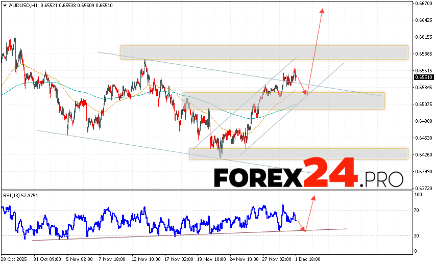 Australian Dollar Forecast AUD/USD for December 2, 2025 suggests an attempt to test the support level near 0.6525. Subsequently, continued growth above 0.6645. An additional signal in favor of an uptrend would be a rebound from the trend line on the relative strength indicator. The upside scenario would be cancelled if AUD/USD quotes fall and break below 0.6475. This would indicate continued price declines with a potential target below 0.6325.