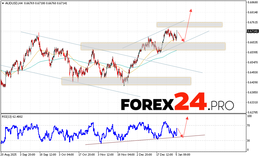 Australian Dollar Forecast AUD/USD for January 6, 2026 suggests an attempt to test support near 0.6655. Subsequently, the pair’s price will continue to rise above 0.6825. A rebound from the trendline on the relative strength indicator (RSI) will be an additional signal in favor of an uptrend. A decline in AUD/USD prices and a breakout of 0.6605 would invalidate the upward trend. This would indicate continued declines with a potential target below 0.6435.