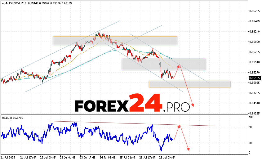 Australian Dollar Forecast AUD/USD for July 30, 2025 suggests an attempt to test the resistance level near the 0.6535 area. Further, the pair will continue to fall below the 0.6445 level. An additional signal in favor of a decline in the pair will be a rebound from the trend line on the relative strength indicator. A strong rise in AUD/USD quotes and a breakout of the 0.6575 area will cancel the decline scenario. This will indicate a continuation of the rise in quotes with a potential target above the 0.6765 level.