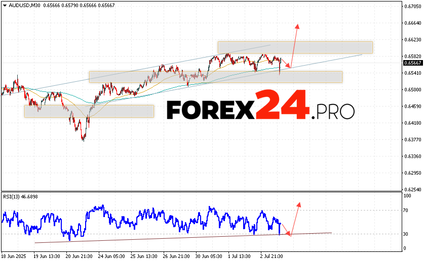 Australian Dollar Forecast AUD/USD for July 4, 2025 suggests an attempt to test the support level near the 0.6545 area. Further, the pair’s quotes will continue to grow above the 0.6665 level. An additional signal in favor of the pair’s rise will be a rebound from the trend line on the relative strength indicator. The cancellation of the growth option will be a fall in AUD/USD quotes and a breakout of the 0.6505 area. This will indicate a continuation of the quotes’ decline with a potential target below the 0.6325 level.