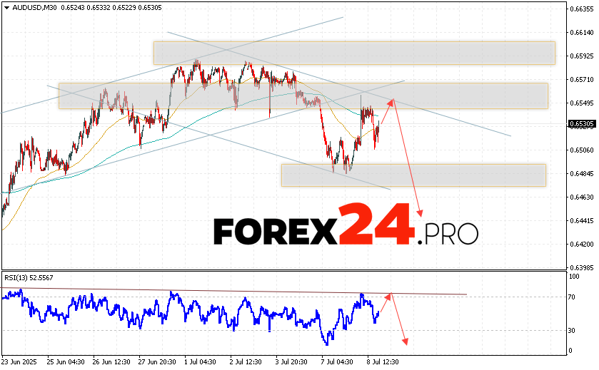 Australian Dollar Forecast AUD/USD for July 9, 2025 suggests an attempt to test the support level near the 0.6465 area. Further, the pair’s quotes will continue to rise above the 0.6685 level. An additional signal in favor of the pair’s rise will be a rebound from the trend line on the relative strength indicator. A fall in AUD/USD quotes and a breakout of the 0.6385 area will cancel the growth scenario. This will indicate a continuation of the decline in quotes with a potential target below the 0.6235 level.