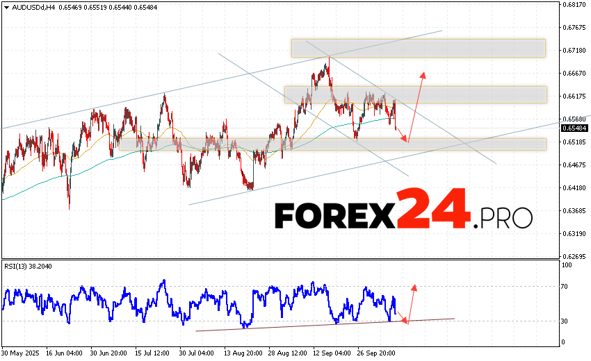 Australian Dollar Forecast AUD/USD for October 10, 2025 suggests an attempt to test the support level near 0.6515. Subsequently, continued growth above 0.6665. An additional signal in favor of the pair’s growth would be a rebound from the trend line on the relative strength indicator. The upside scenario would be cancelled if AUD/USD quotes fall and break below 0.6435. This would indicate a continued decline with a potential target below 0.6225.