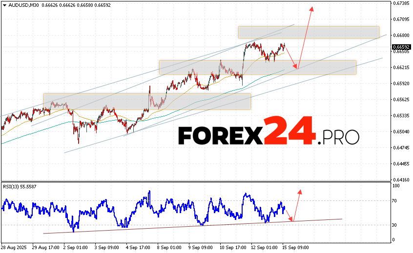 Australian Dollar Forecast AUD/USD for September 17, 2025 suggests an attempt to test the support level near the 0.6615 area. Further, the continuation of the growth of the pair’s quotes above the 0.6775 level. An additional signal in favor of the rise of the pair will be a rebound from the trend line on the relative strength indicator. The growth scenario will be cancelled if AUD/USD quotes fall and the 0.6585 area is broken. This will indicate a continuation of the quotes decline with a potential target below 0.6465.