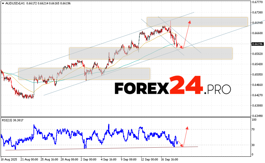 Australian Dollar Forecast AUD/USD for September 19, 2025 suggests an attempt to test the support level near 0.6595. Subsequently, continued growth above 0.6705. An additional signal in favor of the pair’s upside would be a rebound from the trend line on the relative strength indicator. The upside scenario would be cancelled if AUD/USD quotes fall and break the 0.6575 level. This would indicate a continued decline with a potential target below 0.6425.