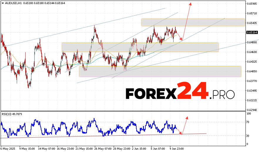 Australian Dollar Forecast AUD/USD for June 11, 2025 suggests an attempt to test the support level near the 0.6485 area. Further, the continuation of the pair quotes growth above the level of 0.6605. An additional signal in favor of the pair’s rise will be a rebound from the trend line on the relative strength indicator. A fall in AUD/USD quotes and breakdown of the 0.6475 area will cancel the growth option. This will indicate the continuation of the quotes decline with a potential target below the level of 0.6335.