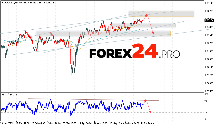 Australian Dollar Forecast AUD/USD for June 13, 2025 suggests an attempt to test the resistance level near the 0.6595 area. Further, the pair will continue to fall below the 0.6355 level. An additional signal in favor of a decline in the pair will be a rebound from the trend line on the relative strength indicator. A strong rise in AUD/USD quotes and a breakout of the 0.6635 area will cancel the decline scenario. This will indicate a continuation of the rise in quotes with a potential target above the 0.6825 level.