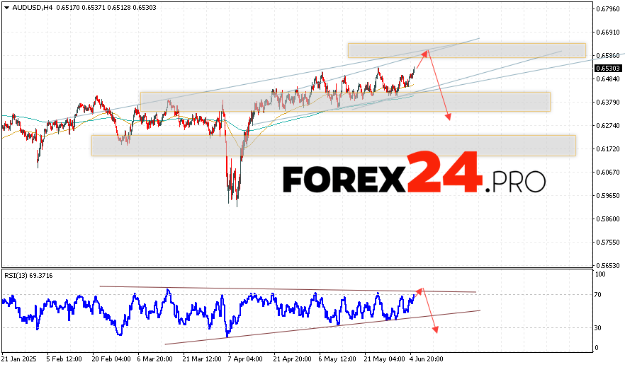Australian Dollar Forecast AUD/USD for June 6, 2025 suggests an attempt to test the resistance level near the 0.6585 area. Further, the pair will continue to fall below the 0.6275 level. An additional signal in favor of a decline in the pair will be a rebound from the trend line on the relative strength indicator. A strong rise in AUD/USD quotes and a breakout of the 0.6615 area will cancel the decline scenario. This will indicate a continuation of the rise in quotes with a potential target above the 0.6765 level.