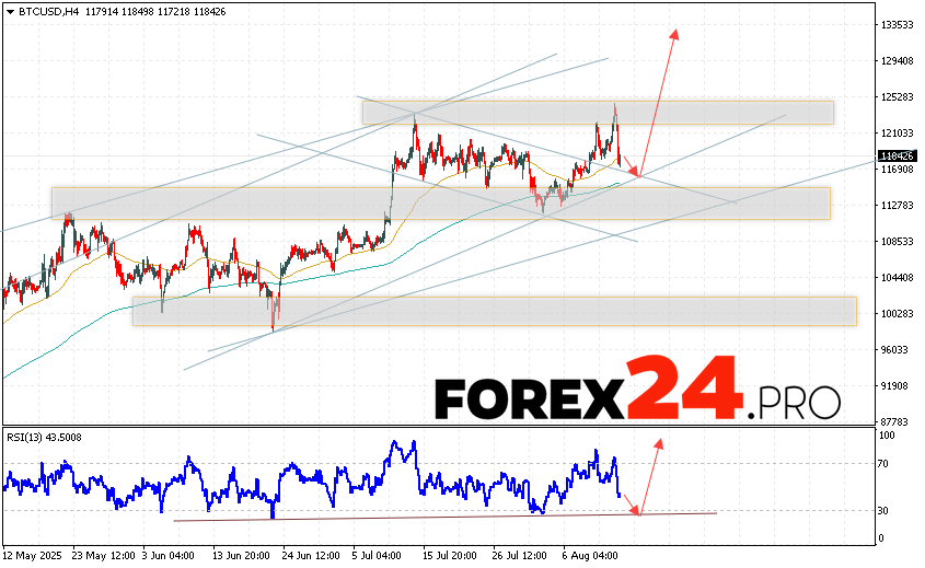 Bitcoin Forecast and BTC/USD Analysis for August 15, 2025 suggests an attempt to test the support level near the 115605 area. Further, the cryptocurrency will continue to grow with a potential target at 133505. An additional signal in favor of a rise in the Bitcoin rate will be a test of the support line on the relative strength indicator. A breakout of the 112405 area will cancel the growth scenario for the digital currency. This will indicate a continuation of the coin’s decline with a potential target below the 105605 mark.