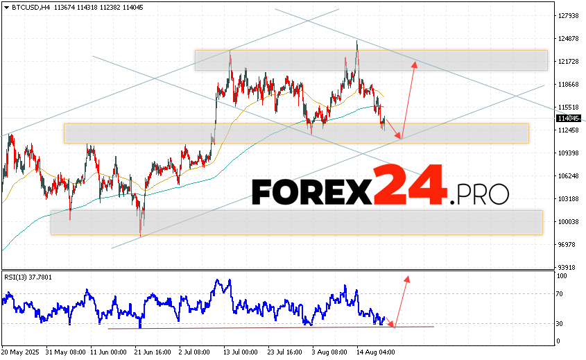 Bitcoin Forecast and BTC/USD Analysis for August 21, 2025 suggests an attempt to test the support level near the 110505 area. And then, the continuation of the growth of the cryptocurrency with a potential target at 121505. An additional signal in favor of the rise in the Bitcoin rate will be a test of the support line on the relative strength indicator. The cancellation of the growth option for the digital currency will be a breakout of the 108505 area. This will indicate a continuation of the coin’s fall with a potential target below the 102505 mark.