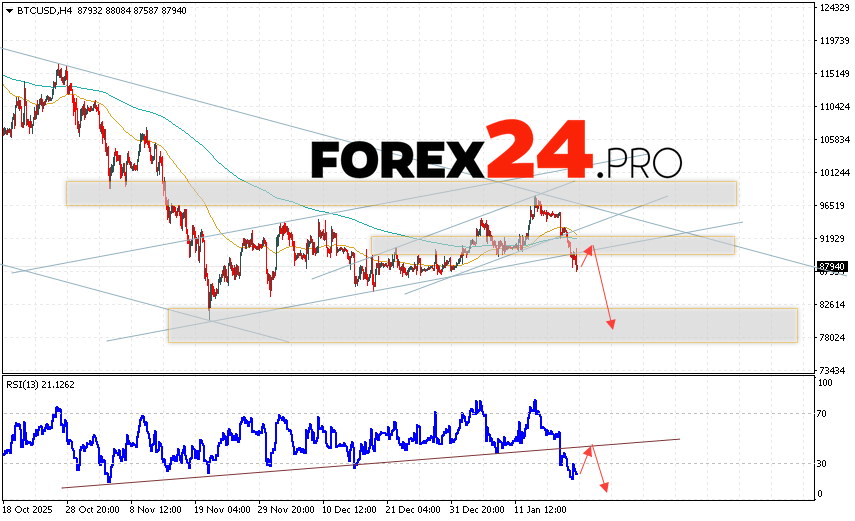 Bitcoin Forecast and BTC/USD Analysis for January 22, 2026 suggests an attempt to test the resistance level near 92505. Subsequently, the cryptocurrency would continue to decline, with a potential target of 78505. A test of the resistance line on the relative strength indicator (RSI) would serve as an additional signal in favor of Bitcoin’s price growth. A breakout of the 101505 area would cancel out the digital currency’s downward trend. This would indicate continued upward movement with a potential target above 107475.