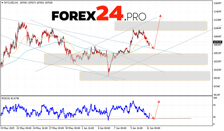 Bitcoin Forecast and BTC/USD Analysis for June 13, 2025 suggests an attempt to test the support level near the 105025 area. Further, the cryptocurrency will continue to grow with a potential target at 113405. An additional signal in favor of a rise in the Bitcoin rate will be a test of the support line on the relative strength indicator. A breakout of the 101665 area will cancel the option of a rise in the digital currency. This will indicate a continuation of the coin’s decline with a potential target below the 95605 mark.