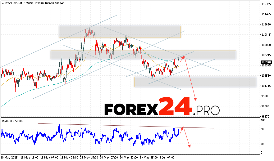 Bitcoin Forecast and BTC/USD Analysis for June 4, 2025 anticipates a test of the resistance level near the area of 107,265. Subsequently, there is expected to be further decline in the cryptocurrency towards a potential target at the level of 97,505. An additional signal for Bitcoin’s price depreciation will be testing the resistance line on the Relative Strength Index (RSI) indicator. Cancellation of the downside scenario for the digital currency will occur if it breaks through the area of 112,505. This will indicate continuation of the coin’s growth with a potential target above the mark of 117,665.