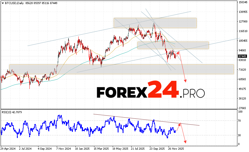 Bitcoin Forecast BTC/USD December 22 – 26, 2025 suggests an attempt to break the resistance area near 94045. This would then lead to a continued decline below 60405. A test of the trend line on the relative strength indicator (RSI) would be an additional signal for a decline in the Bitcoin price this trading week. A strong rally and a breakout of the 105605 area would cancel the Bitcoin downside scenario. In this case, a continued rise with a target of 115065 is expected.