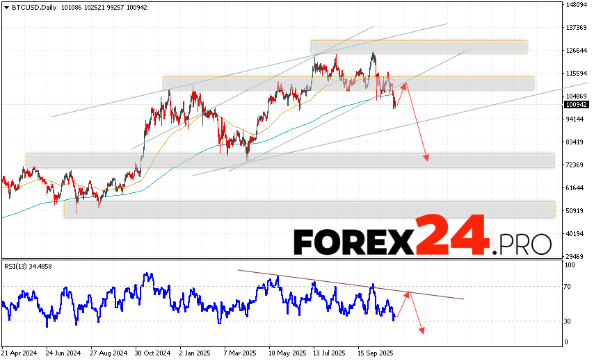 Bitcoin Forecast BTC/USD November 10 – 14, 2025 suggests an attempt to break the resistance level near 105605. Then, the cryptocurrency will continue to decline below 72605. A test of the trend line on the relative strength indicator (RSI) will be an additional signal of a decline in the Bitcoin price this week. A strong rally and a breakout of 115605 will cancel out the downward trend for Bitcoin. In this case, a continued rise with a target of 125505 is expected.