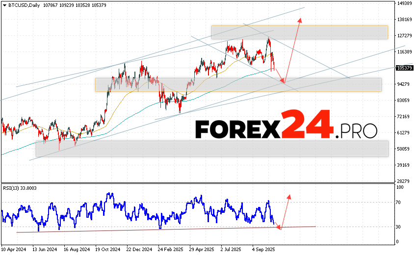 Bitcoin Forecast BTC/USD October 20 — 24, 2025 suggests an attempt to break the support area near 94065. Subsequently, the cryptocurrency will continue to rise above 138505. An additional signal favoring a Bitcoin price increase this trading week will be a test of the trend line on the relative strength indicator (RSI). A decline and a breakout of 84065 will cancel out the Bitcoin price growth scenario. In this case, a continued decline with a target of 75605 is expected.