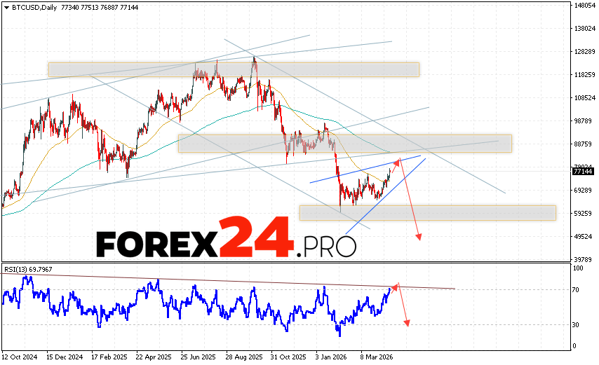 Bitcoin Forecast BTCUSD April 20 – 24, 2026 suggests an attempt to break the resistance area near 78505. Subsequently, the cryptocurrency will continue to decline below 49605. An additional signal for a decline in the Bitcoin price this trading week would be a test of the trend line on the relative strength indicator. A strong rally and a breakout of the 88505 area would cancel the Bitcoin downside scenario. In this case, a continued rise with a target of 95605 is expected.