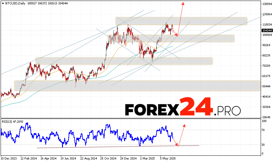An additional signal favoring the growth of BTC/USD quotes during the week of June 16-20, 2025, will be a rebound from the lower border of the bullish channel. A second signal will be a rebound from the support line on the relative strength index (RSI). A fall below the 87,065 level will cancel the possibility of a Bitcoin rise in the current trading week. This would indicate a breakout of the support area and a continuation of the decline in BTC/USD quotes, with a potential target below the 78,405 level. A breakout of the resistance area and a close above the 113,605 level will confirm the bullish movement.