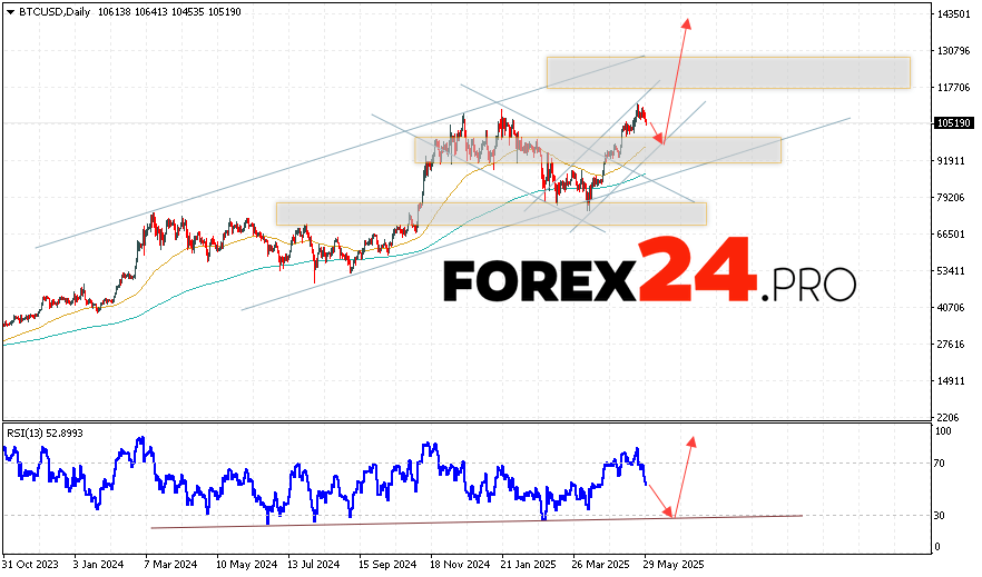Bitcoin Weekly Forecast BTCUSD June 2 — 6, 2025 anticipates an attempt at the support area near the level of 100,565. Then, continuation of the cryptocurrency’s rise towards regions above the level of 143,505. An additional signal in favor of Bitcoin price increase on the current trading week would be testing a trend line on the Relative Strength Index (RSI) indicator. Cancellation of the option for rising quotes’ values of Bitcoin cryptocurrency will happen with a drop and breaking the area of 88,605. In this case, we should expect further decline with the target at the level of 78,505.