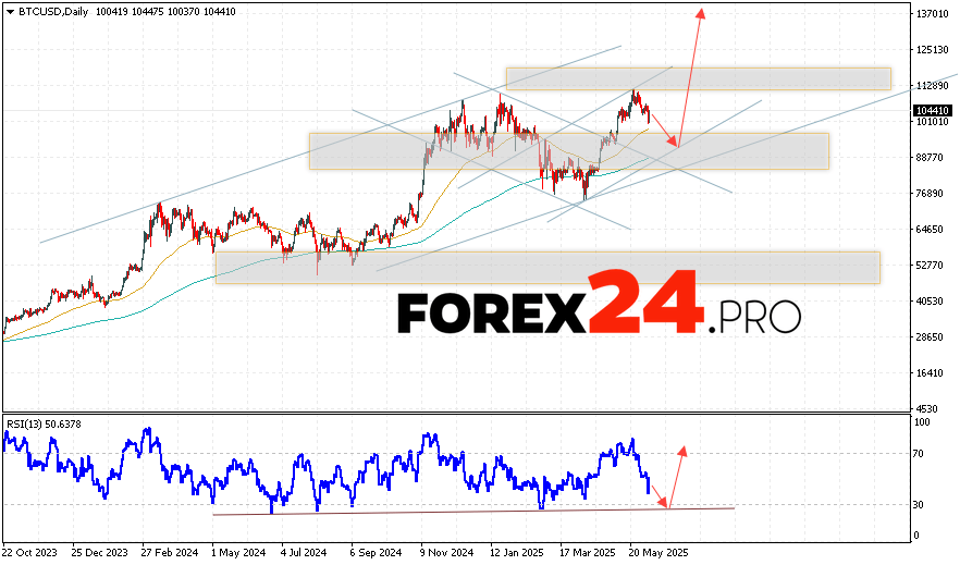 Bitcoin Weekly Forecast BTC/USD June 9 — 13, 2025 suggests an attempt at the support area near the 91505 level. Then, the cryptocurrency will continue to rise to an area above the 137065 level. An additional signal in favor of a rise in the Bitcoin rate during the current trading week will be a test of the trend line on the relative strength indicator. A fall and breakout of the 85605 area will cancel the option of growth in Bitcoin cryptocurrency quotes. In this case, a continuation of the decline with a target at 77445 should be expected.