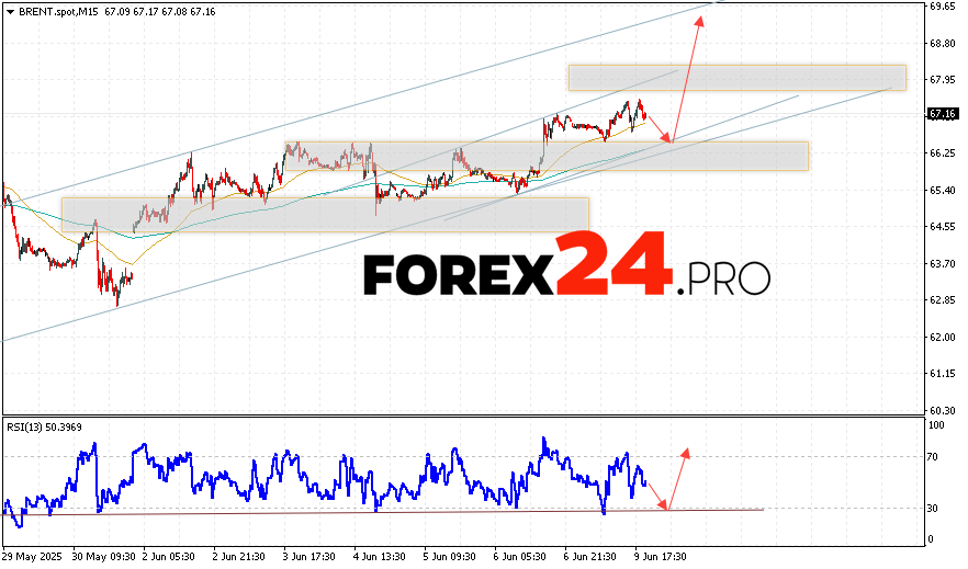 Brent crude oil Forecast for June 10, 2025 assumes an attempt to test the support level near the area of 66.15. Further, the continuation of oil growth with a target above the level of 69.75. A test of the trend line on the relative strength indicator will support the asset’s rise. A fall and breakout of the 65.45 level will cancel the Brent oil price growth scenario. This will indicate a continuation of the decline in quotes to the area below the 56.05 level.