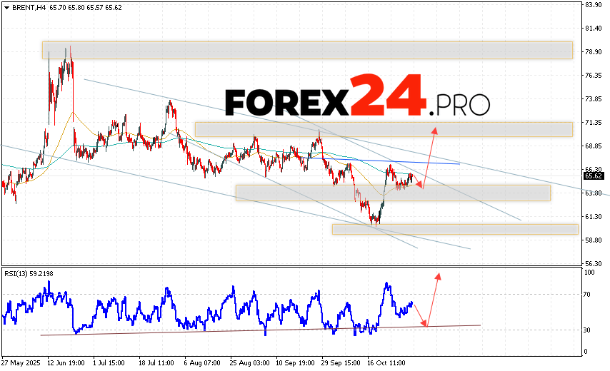 Brent crude oil Forecast for November 4, 2025 suggests an attempt to test the support level near $63.65. Further growth is expected with a target above $70.45. A test of the trend line on the relative strength indicator (RSI) would support the asset’s upside. The Brent price rally would be cancelled if the price falls below $59.05 and a breakout would indicate a continued decline in prices below $54.35.