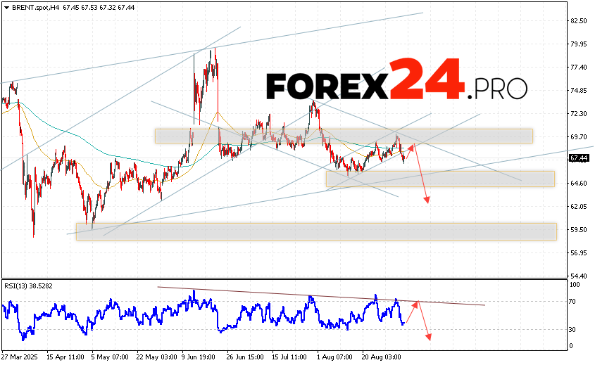 Brent crude oil Forecast for September 5, 2025 suggests an attempt to test the resistance level near the area of 68.25. Further, the continuation of the fall of oil with a target below the level of 62.25. A test of the trend line on the relative strength indicator will be in favor of a decrease in the asset. The cancellation of the scenario of falling Brent oil prices will be a strong growth and a breakout of the level of 71.65. This will indicate continued growth of quotes to the area above the level of 76.45.