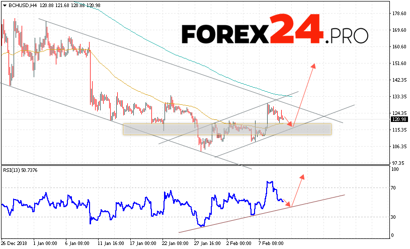Bitcoin Cash Forecast and Analysis BCH/USD February 12, 2019 suggests an attempt to test the support area near the level of 115. Where should we expect a rebound and continued growth of BCH/USD to an area above the level of 150. An additional signal in favor of raising Bitcoin Cash will be a test of the trend line on the relative strength index (RSI). Cancellation of the growth option will be the fall and the breakdown of the area 110. This will indicate a continued decline in cryptocurrency with a potential target below level 95.