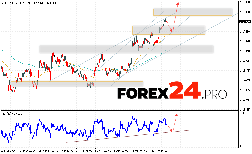 EUR/USD Forecast Euro Dollar for April 16, 2026 suggests an attempt to develop a bearish correction in currency quotes with a test of the support level near 1.1750. Where should we expect an upward rebound in the Euro/Dollar currency pair and an attempt to continue the instrument’s growth on the Forex market, targeting 1.1895? An additional signal supporting this scenario would be a rebound from the support line on the relative strength indicator (RSI). A decline in the EUR/USD pair and a breakout of 1.1675 would cancel the upward trend. This would indicate a breakout of the support zone and a continued decline in the currency pair on Forex toward 1.1455.