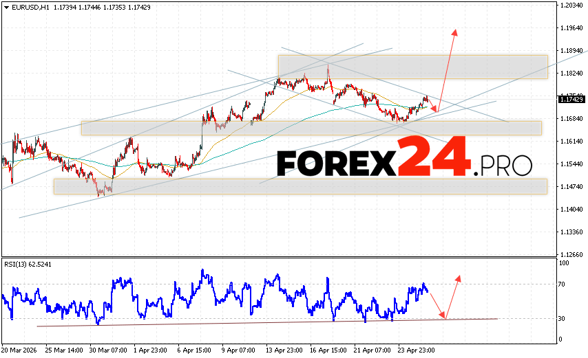 EUR/USD Forecast Euro Dollar for April 28, 2026 suggests an attempt to develop a bearish correction in currency quotes with a test of the support level near 1.1695. Where should we expect an upward rebound in the Euro/Dollar currency pair and an attempt to continue the instrument’s growth on the Forex market, targeting 1.1985? An additional signal supporting this scenario would be a rebound from the support line on the relative strength indicator (RSI). A decline in the EUR/USD pair and a breakout of 1.1605 would cancel the upward trend. This would indicate a breakout of the support zone and a continued decline in the currency pair on Forex toward 1.1385.