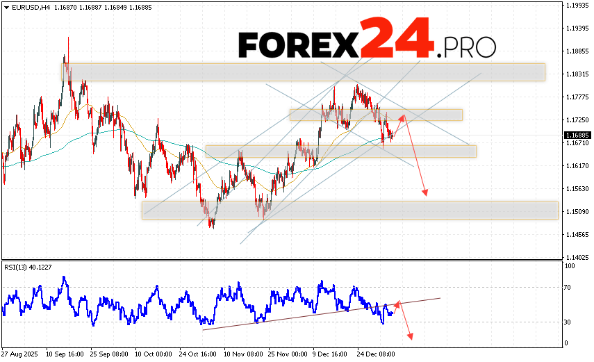 EUR/USD Forecast Euro Dollar for January 8, 2026 suggests an attempt at currency growth, testing resistance near 1.1725. This is where we should expect a downward rebound in the EUR/USD pair and an attempt at continued decline on the Forex market, targeting 1.1545. A breakout from the resistance line on the relative strength indicator (RSI) will serve as an additional signal. A strong rally and a breakout of 1.1805 would cancel the EUR/USD decline. This would indicate a breakout of the resistance zone and continued growth on the Forex market toward 1.1975.