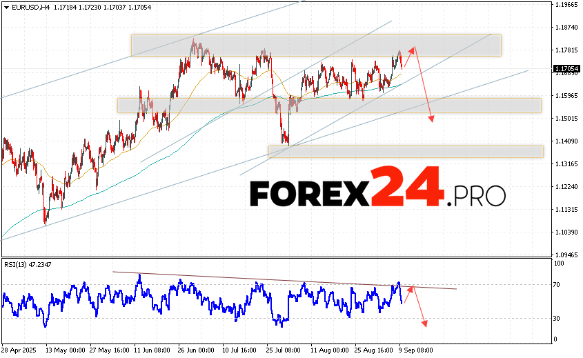 EUR/USD Forecast Euro Dollar for September 10, 2025 suggests an attempt to develop a bullish correction of currency quotes with a test of the resistance level near the level of 1.1775. Where should we expect a downward rebound in quotes for the Euro Dollar currency pair and an attempt to continue the fall in the asset value on the market to the level of 1.1495. An additional signal in favor of a decline in the instrument on the Forex market will be a rebound from the resistance line on the relative strength indicator (RSI). The cancellation of the option of a fall in the EUR/USD pair will be a strong increase in quotes and a breakout of the level of 1.1875. This will indicate a breakout of the resistance zone and a continuation of the rise of the currency pair on Forex to the level of 1.2065.