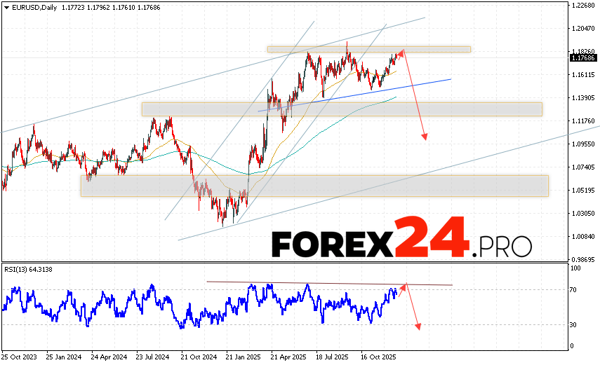 An additional signal favoring a decline in the EUR/USD pair on Forex will be a test of the resistance line on the relative strength indicator (RSI). The second signal will be a rebound from the upper boundary of the Head and Shoulders pattern. A strong rally and a breakout of 1.2045 will cancel out the downward trend in the EUR/USD pair during the current trading week (December 29, 2025 – January 2, 2026). This will indicate a breakout of the resistance area and continued growth above 1.2375. A breakout of the support area and a close below 1.1405 should confirm the pair’s decline, indicating a breakout of the lower boundary of the Head and Shoulders pattern and the beginning of the pattern’s implementation with targets below.