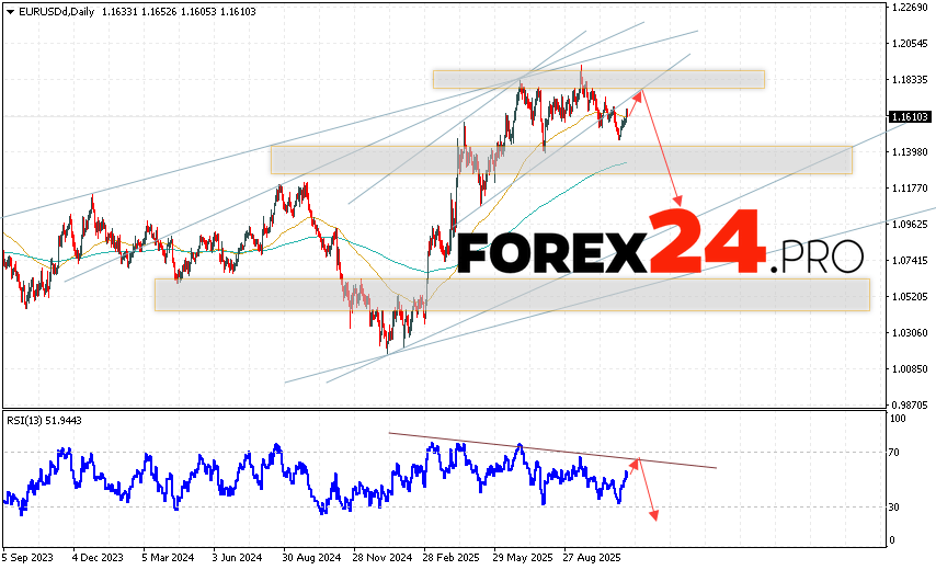 EUR/USD Weekly Forecast November 17 – 21, 2025 suggests an attempt at a bullish correction and a test of the resistance area near 1.1745. From this point, a downward price rebound and a continued decline in the pair on the Forex market below 1.1045 should be expected. An additional signal supporting a decline would be a test of the resistance line on the relative strength indicator (RSI). A strong rally and a breakout of 1.2065 would cancel out the EUR/USD decline. In this case, we should expect continued upside with a potential target at 1.2335.