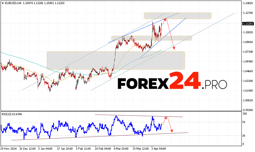 EUR/USD Forecast Euro Dollar for April 11, 2025 suggests an attempt to develop the pair’s growth and a test of the resistance area near the level of 1.1225. Where should we consider the rebound in the price of the Euro Dollar currency pair downwards and an attempt to continue the asset’s fall on the market to the area below the level of 1.0745. An additional signal in favor of the instrument’s decline on the Forex market will be a test of the resistance line on the relative strength indicator (RSI). The cancellation of the EUR/USD pair’s fall option will be a strong increase in quotes and a breakout of the level of 1.1315. This will indicate a breakout of the resistance area and continued growth of the currency pair on Forex to the area above the level of 1.1565.