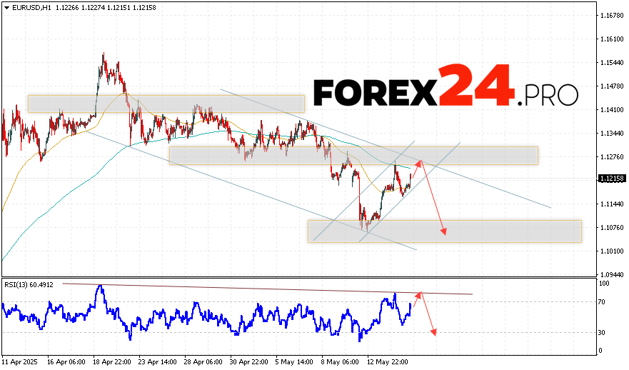 EURUSD Forecast Euro Dollar for May 16, 2025 predicts an attempt to develop a bullish correction for the pair and test the resistance area near level 1.1235. From there, consider a price bounce in the EUR/USD currency pair downwards and an attempt to continue the asset’s decline in the market region below level 1.1055. An additional signal for reducing the instrument on the Forex market would be testing the resistance line on the Relative Strength Index (RSI). Cancellation of the downside option for the EUR/USD pair will come with a strong rise in quotations and breaking through the level of 1.1365. This will indicate a breakout of the resistance area and continuation of the growth of the currency pair on Forex to the region above the level of 1.1675.