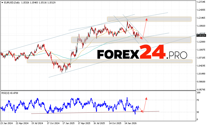 EURUSD Weekly Forecast April 6 – 10, 2026 suggests an attempt at a bearish correction and a test of the support area near 1.1375. From this point, we should expect an upward price rebound and continued growth in the Forex market above 1.2165. An additional signal in favor of an upside move would be a test of the support line on the relative strength indicator (RSI). A decline and a break of 1.1205 would cancel out the EUR/USD rally. In this case, we should expect continued decline with a potential target at 1.0965.