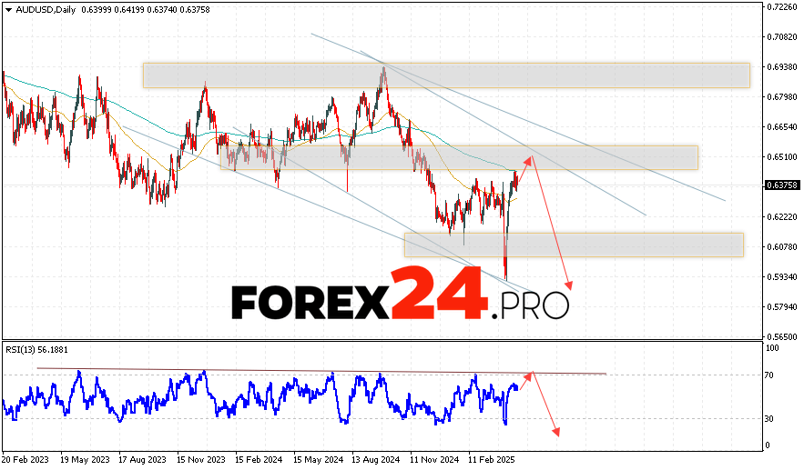 AUD/USD Weekly Forecast April 28, 2025 — May 2, 2025 suggests an attempt to develop a bullish correction and test the 0.6495 level. Further, the continuation of the fall of the currency pair below the 0.5925 level. A test of the trend line on the relative strength indicator will be in favor of the decline of the pair in the current trading week. The cancellation of the fall option will be a strong growth and a breakout of the 0.6695 area. This will indicate a breakout of the resistance area and a continuation of the rise of the pair with a target above 0.7175.