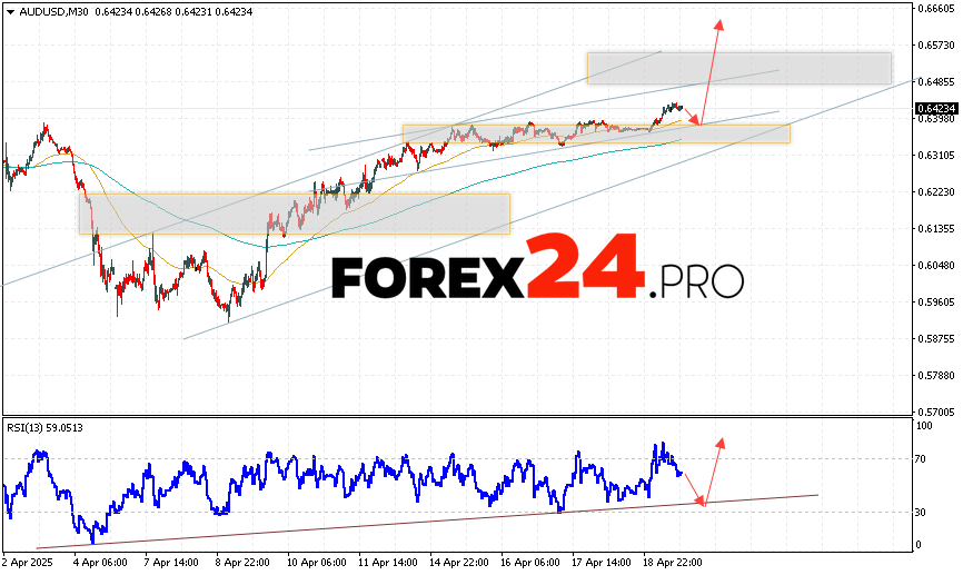 Australian Dollar Forecast for April 22, 2025 suggests an attempt to test the support level near the area of 0.6375. Further, the continuation of the growth of the pair’s quotes above the level of 0.6645. An additional signal in favor of the rise of the pair will be a test of the trend line on the relative strength indicator. The scenario with growth will be cancelled if the AUD/USD quotes fall and the area of 0.6345 is broken. This will indicate a continuation of the decline in quotes with a potential target below the level of 0.6075.