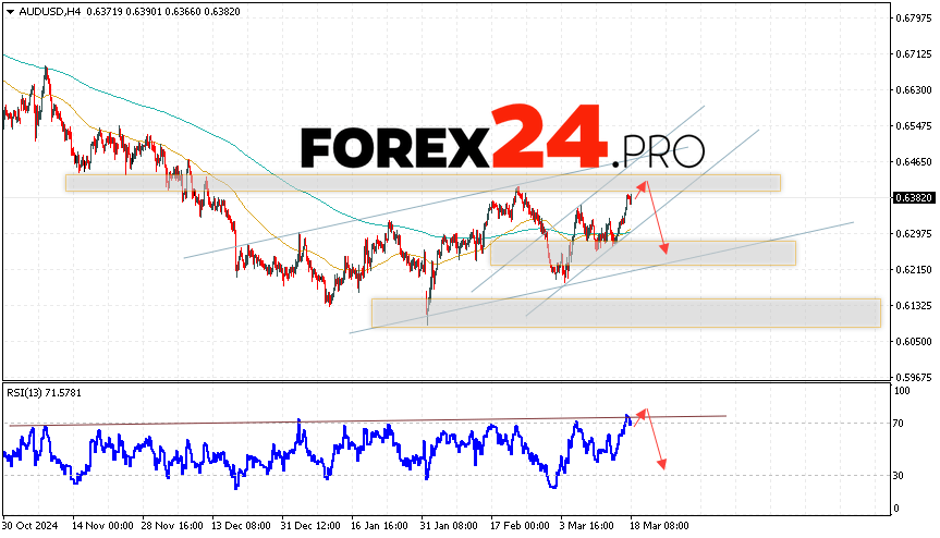 Australian Dollar Forecast for March 19, 2025 suggests an attempt to test the resistance level near the 0.6405 area. Further, the pair’s quotes will continue to fall below the 0.6265 level. An additional signal in favor of the pair’s decline will be a test of the trend line on the relative strength indicator. The scenario with a fall will be cancelled by a strong growth in the AUD/USD quotes and a breakout of the 0.6505 area. This will indicate a continuation of the rise in quotes with a potential target above the level of 0.6675.