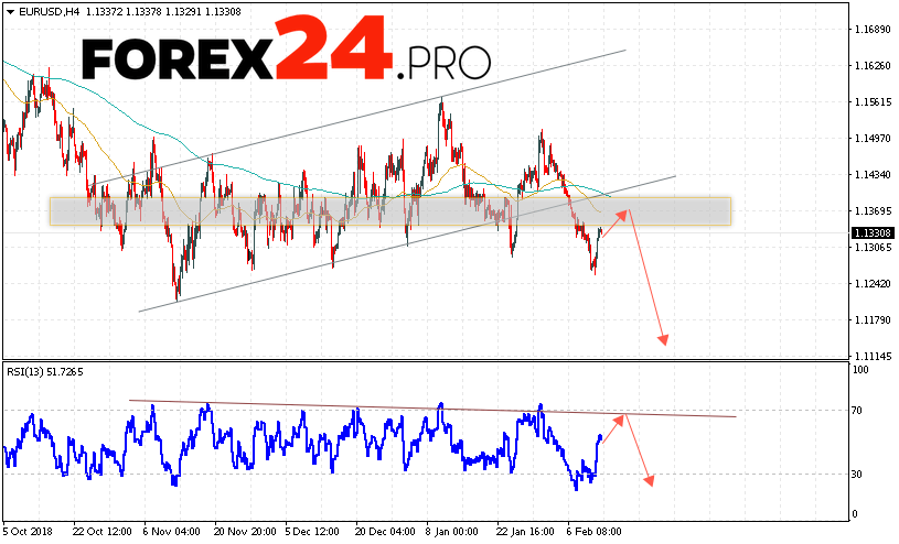 EUR/USD Forecast Euro Dollar February 14, 2019 implies an attempt to test the resistance area near the level of 1.1370. Where should we expect a rebound and an attempt to continue to reduce the pair to the area below the level of 1.1135. In favor of the fall of the currency pair will test the trend line on the indicator of relative strength index (RSI). Cancellation of the option to reduce EUR/USD will be a strong growth and the breakdown level of 1.1455. This will indicate a breakdown of resistance and the continued growth of the pair to an area above 1.1655.