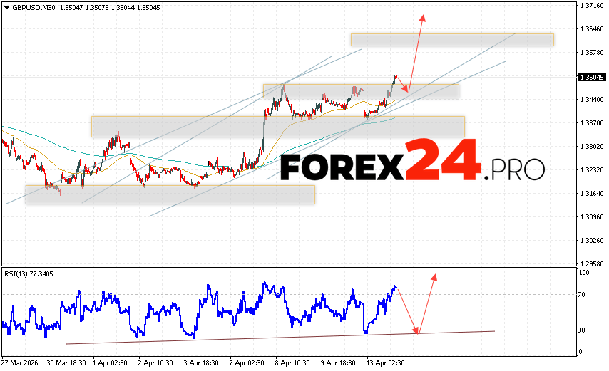 GBP/USD Forecast and Analysis for April 14, 2026 suggests an attempt to develop a bearish correction and test the support area near 1.3465. Then, continued growth with a target near 1.3685. An additional signal favoring a rise in the British Pound will be a test of the support line on the relative strength indicator (RSI). A decline in the British Pound against the US Dollar and a breakout of 1.3375 would invalidate this upward trend. This would indicate a continued decline in the Forex pair with a potential target below 1.3185.